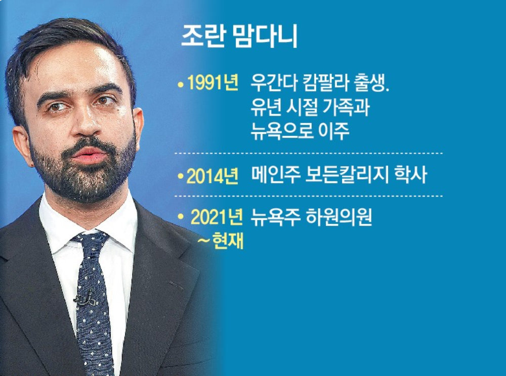 무명의 정치 신인이던 맘다니는 뉴욕주지사 출신의 중진 쿠오모를 예비선거에서 꺾고 민주당 후보가 되었고, 본선에서는 무소속으로 출마한 쿠오모와 공화당 후보를 제치고 결국 뉴욕시장에 당선됐습니다.